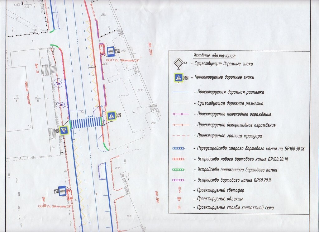 PS забыл про знаки и столбы: они не должны мешать проходу и быть в буферной зоне, а не по центру.