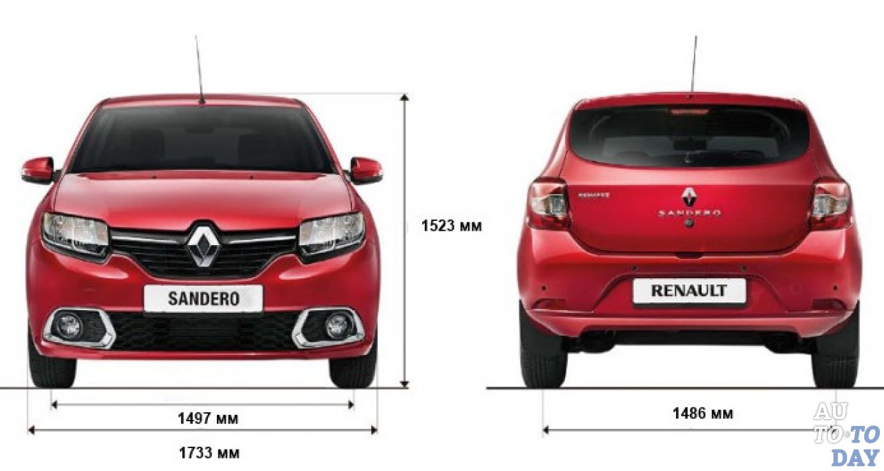 Габариты Рено Сандеро, размеры, масса, клиренс, дорожный просвет