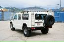 Прямую крышу пересекают узкие ребра жесткости, задняя половина крыши используется под установку металлического багажника, к его заднему краю примыкает лестница. Под высокими порогами подвешены подножки, задние фонари скомпонованы на узком бампере, дверь багажника распашная, с ее правой стороны подвешено запасное колесо. Габариты кузова составляют 5090/2170/2075 мм, высота дорожного просвета – 420 мм. Размер задней колеи – 1775 мм, передней1795 мм, снаряженная/полная масса – 2850/3780 кг, колесная база – 3395 мм.
