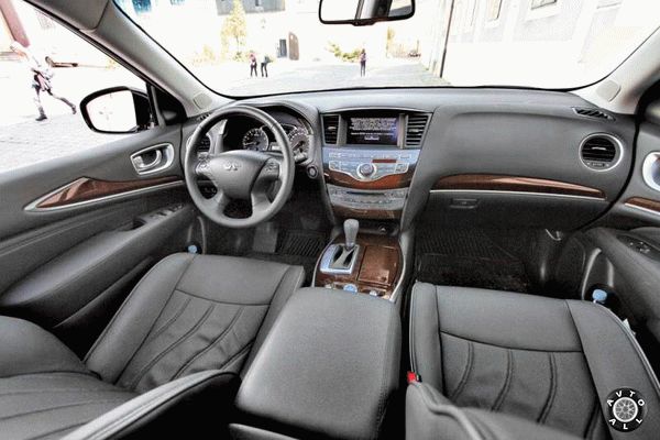 Достойным продолжением внешнего неоднозначного стиля оказалась внутренняя отделка автомобиля. Высококачественные отделочные материалы вместе с продуманным дизайном напоминают, что Инфинити — это премиум модели концерна Nissan.