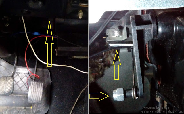 Ослабив винт, снимаем тросик с заслонки на обогрев лобового стекла, находящийся слева от консоли под панелью приборов.