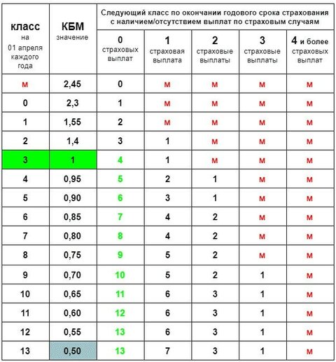 У каждого класса свой КБМ. Чем больше цифра самого класса, тем приятнее выглядит низкий показатель коэффициента – а значит, при расчете в калькуляторе ОСАГО цена полиса будет меньше.