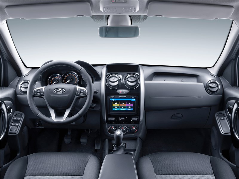 Передняя панель и обивка дверей с клавишами стеклоподъемников заимствованы у Renault Duster первого поколения, а мультируль с оплеткой из экокожи и обогревом — у Lada XRAY Cross.