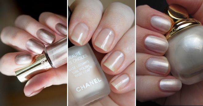 Но обычный прозрачный лак все же выглядит слишком просто и скучно, более интересным вариантом является нежный перламутровый маникюр, визуально удлиняющий ногти. Особенностью такого покрытия является его прозрачность – он не закрашивает ногтевую пластину полностью, а лишь придает ей определенный оттенок. К таким вариантам относятся: