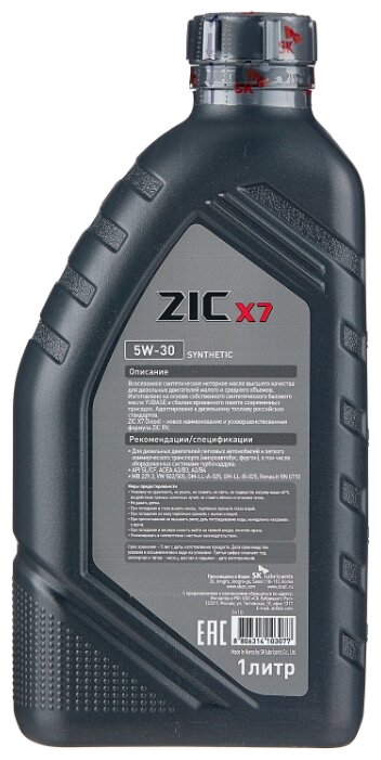 Моторное масло Зик новой серии X9, а также предыдущей ZIC XQ LS, имеет вязкость 5W30 и 5W40 Diesel. Продукты являются синтетическими, но изготовленными на базовом составе YUBASE+, по технологии VHVI. В процессе производства применяется технология Low SAPS. Это позволяет оберегать от преждевременного износа все современные системы очистки выхлопных газов.