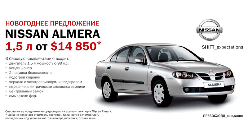 Сочетая улучшенную топливную систему с просторной кабиной и багажным отделением, новый Nissan Almera — идеальный автомобиль, который не подведет в важных жизненных ситуациях.