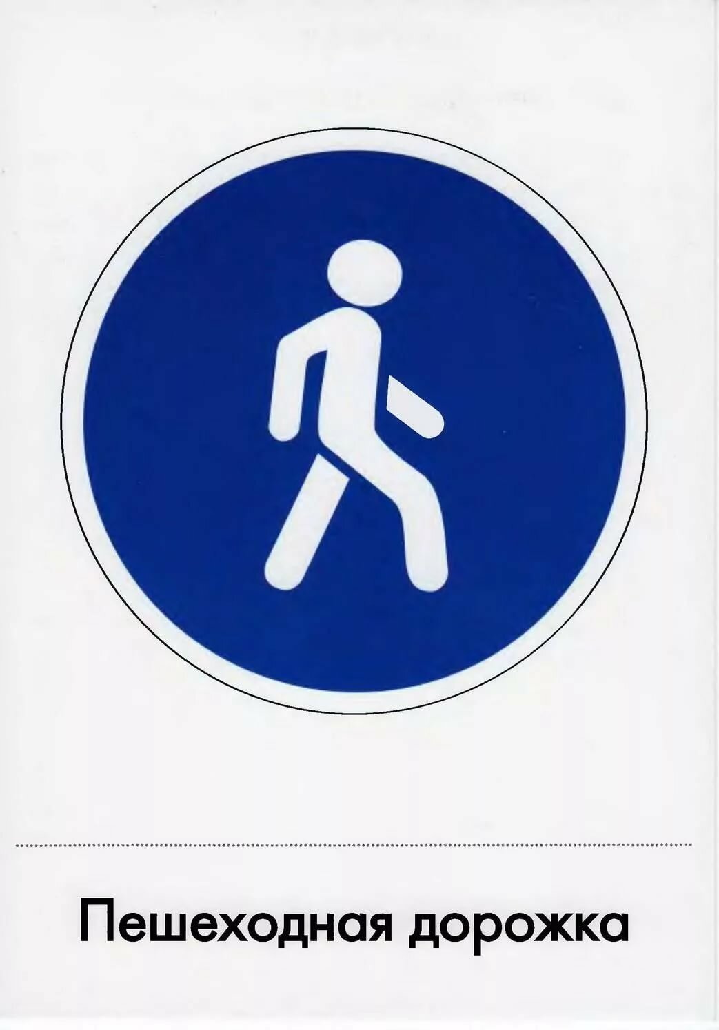 Знак “пешеходная дорожка” относится к категории предписывающих. Он установлен лишь в местах для пешеходов. На этом участке не может находится ни один вид транспортных средств. Это правило распространяется и на велосипедистов.
