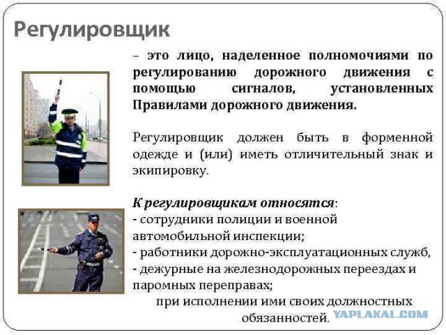 При этом совершенно неважно, что в этот момент показывают светофор и дорожные знаки — указание регулировщика имеет преимущественное значение.