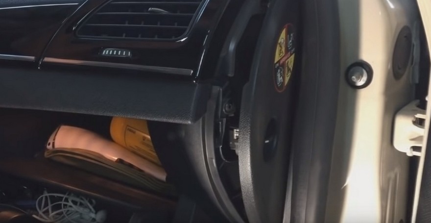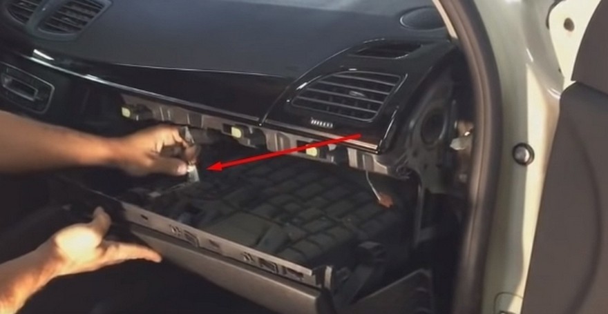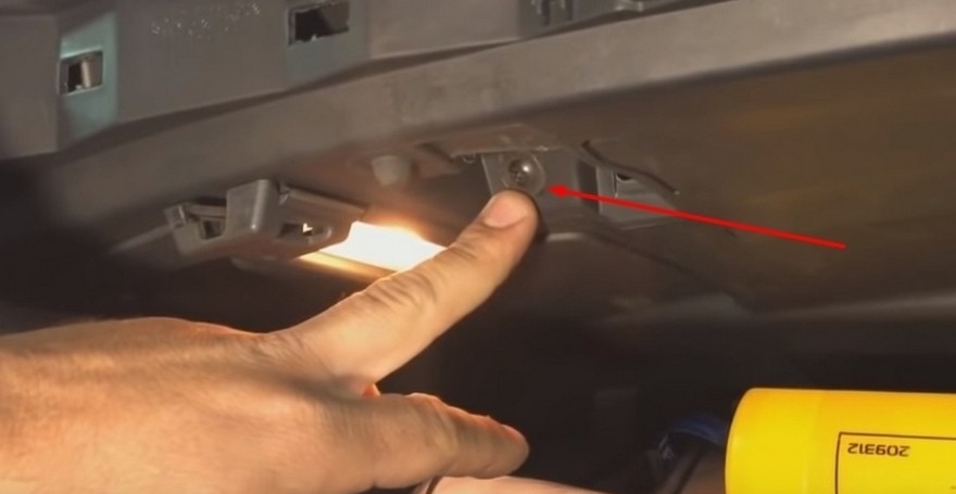 - После снятия накладки, открылось еще три винта крепления бардачка. Откручиваем винты, они тоже под Torx T20.