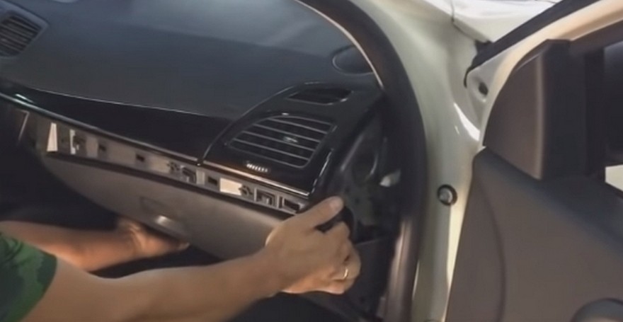 Для работы понадобятся отвертки разных размеров, налобный фонарик, щетки и запасные крепления на всякий случай. В первую очередь нужно демонтировать бардачок. С этим шагом обычно трудностей не возникает. Нужно также отсоединить контакты обдува переднего пассажирского кресла, плафона бардачка, патрубок его вентиляции. На следующем этапе нужно опустить и откинуть спинку того самого пассажирского сидения. Надо разместиться так, чтобы голова оказалась внутри торпеды под пассажирским air bag. Воздуховод нужно демонтировать. Взору водителя предстает блок моторчиков заслонок и решетка воздухозаборника. Слегка подковырнуть отверткой для отсоединения моторчика заслонки рециркуляции, затем отключить от него фишку. В результате должны открыться все винты крепления решетки кроме верхнего с прозвищем «на час».