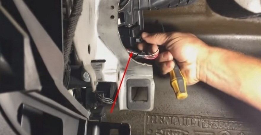 - Сдергиваем бардачок на себя, немного выдвигаем и отключаем разъем питания на лампу подсветки.