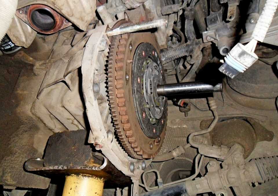 - Подготовив новый узел к монтажу, центрируем диск по отношению к маховику