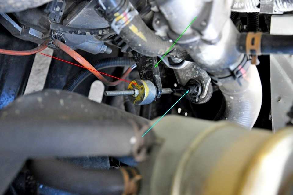 Откручиваем тягу от кулисы. Гайка под ключ на тринадцать. Гайку полностью не откручивайте, просто ослабьте, и извлеките трубку.