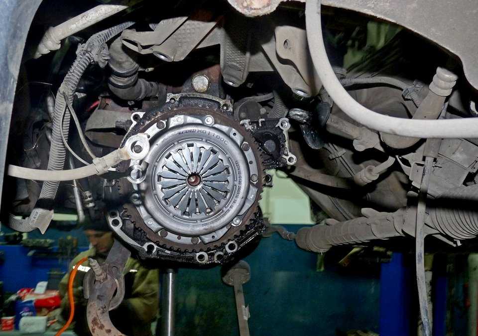 Замена сцепления выполняется преимущественно с помощником, потому что масса трансмиссионного агрегата достигает 50 кг.