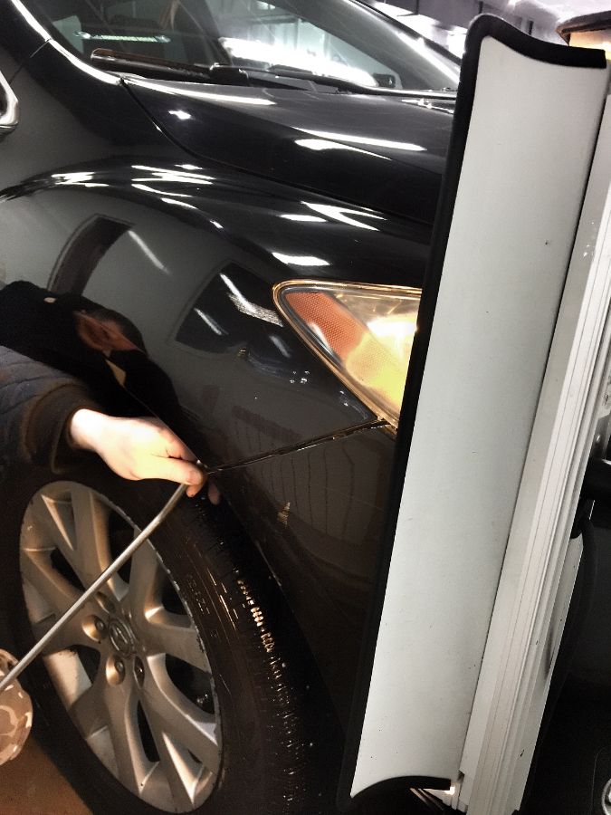 Для того, чтобы без покраски восстановить вмятину, наши специалисты получают доступ к задней части вмятины и используют специальные инструменты, предназначенные для удаления вмятины. Это обеспечивает вид с обеих сторон вмятины и позволяет нашим малярам соответственно оказывать давление, манипулируя вмятиной и, в конечном итоге, восстанавливая ее прежнюю форму.