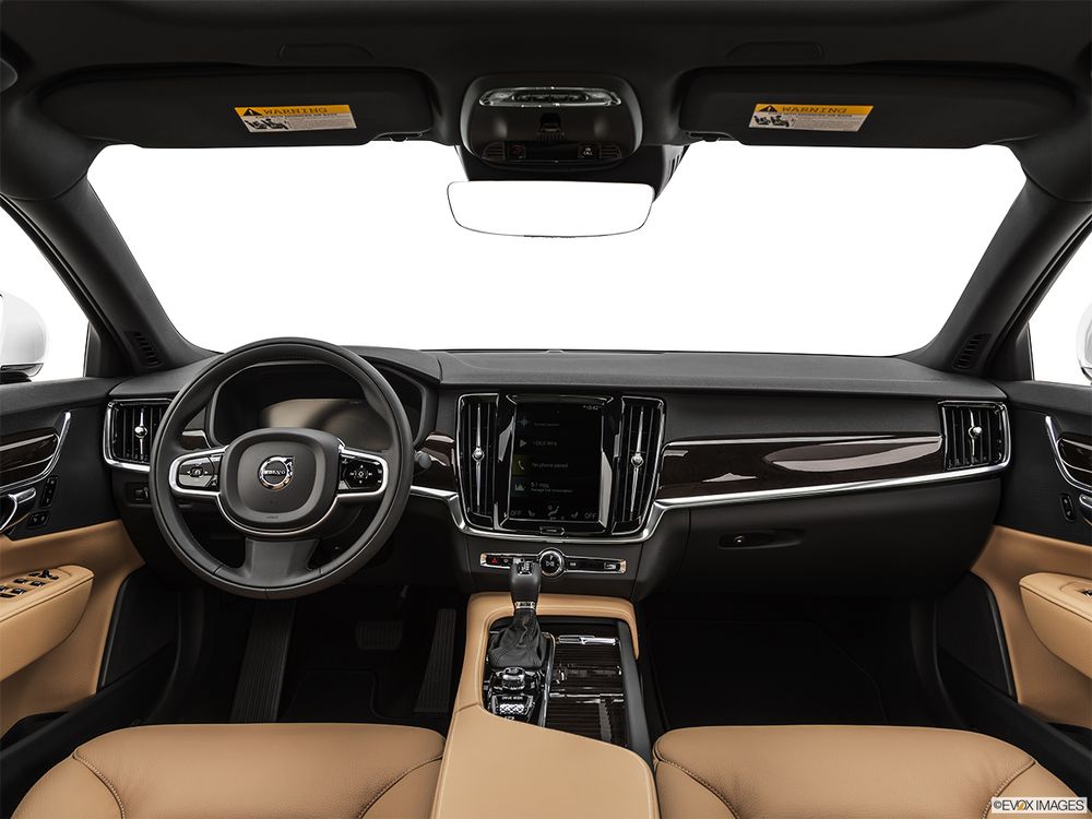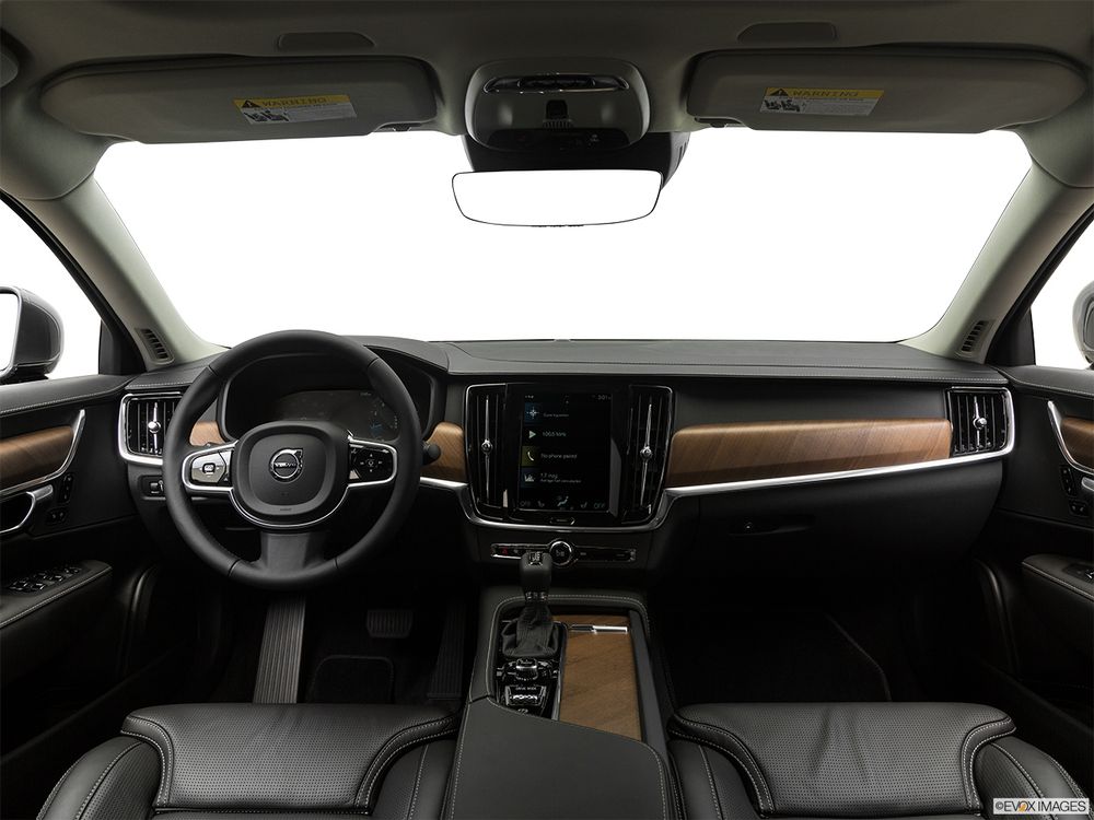 Интерьер S90 современный и роскошный, на приборной панели преобладает сенсорный экран портретного формата, который в сочетании с элементами управления на рулевом колесе , заботится практически обо всех информационно-развлекательных системах автомобиля.