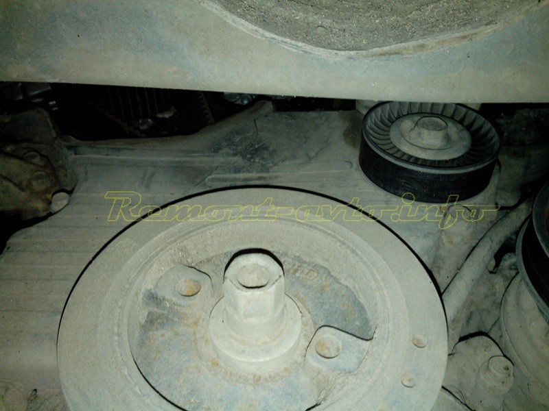 - Откручиваем шкив привода вспомогательных узлов.