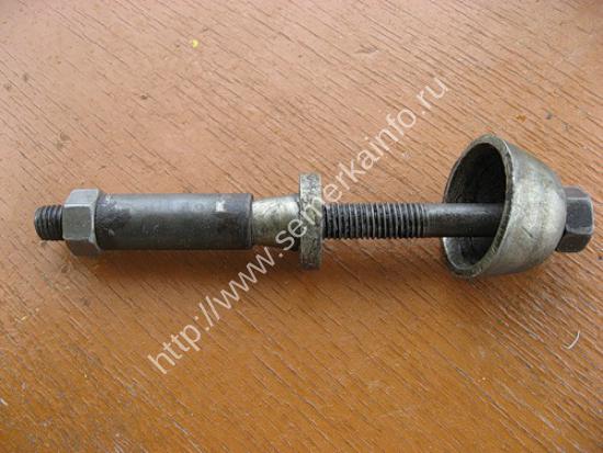 Что касается инструмента…. Здесь будет необходимо иметь, как минимум: два накидных ключа на «19», молоток, металлический стержень (пригодится для выбивания болтов при снятии тяг). А вот о приспособлениях для выпрессовки и запрессовки втулок придется подумать заранее (так как работа без них значительно усложнится). Их можно, как сделать самому (взять болт соответственного диаметра, накрутить гайку и обточить ее до размера наружного диаметра металлической втулки) так и купить (или заказать токарю) готовый инструмент (как он выглядит, смотрим фото №3). Также, наличие тисков, значительно облегчит работу.