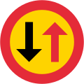 Дает водителю приоритет при проезде узкого участка, встречный транспорт обязан уступить дорогу. Устанавливается только в паре с 2.6.Видео