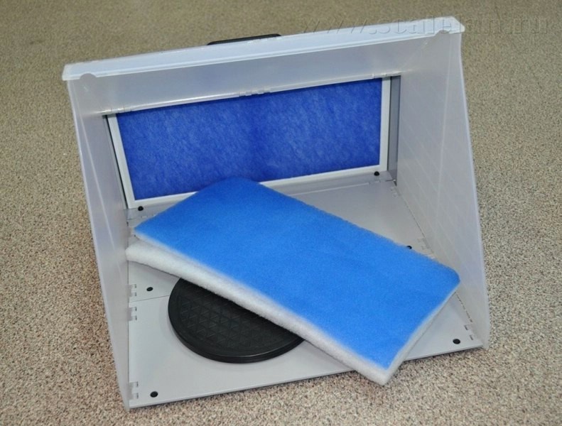 Покраска – один из важнейших и сложных этапов работы над моделью. В большинстве своем для этого используется аэрограф (или баллончики с краской). Наверное, каждый, кто хоть раз что-то красил с помощью аэрографа в комнатных условиях, получил незабываемые впечатления от облаков растворителя и аэрозолей краски вокруг. Это смело можно считать одним из главных вредных факторов нашего увлечения. И фактором очень серьезным. Решение данной проблемы – проведение покрасочных работ в хорошо проветриваемом помещение, использование средств индивидуальной защиты органов дыхания, применение нетоксичной «химии» (например, акриловые краски). Однако, не всегда помещение можно хорошо и быстро проветрить, также не всегда получается использовать акриловые краски в работе.