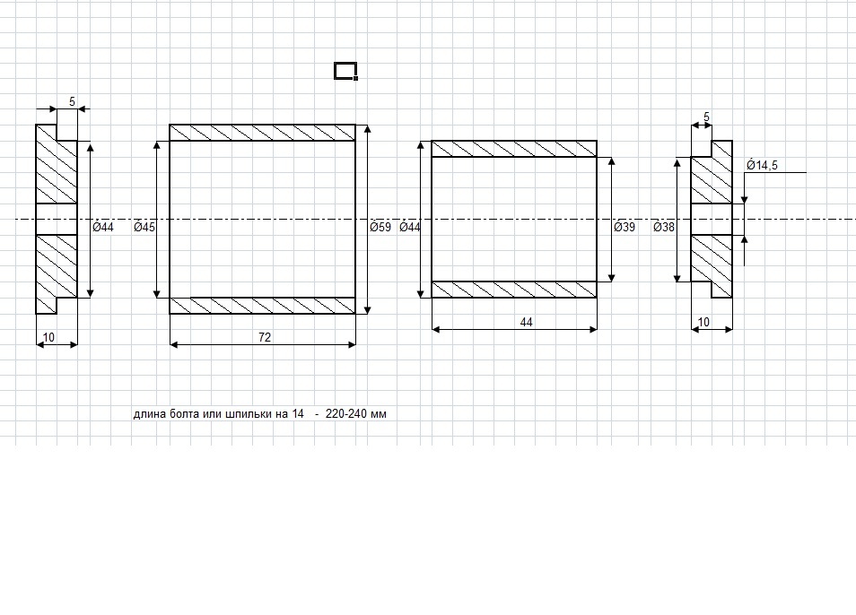 Ось изготавливается из болта диаметром 14 мм.